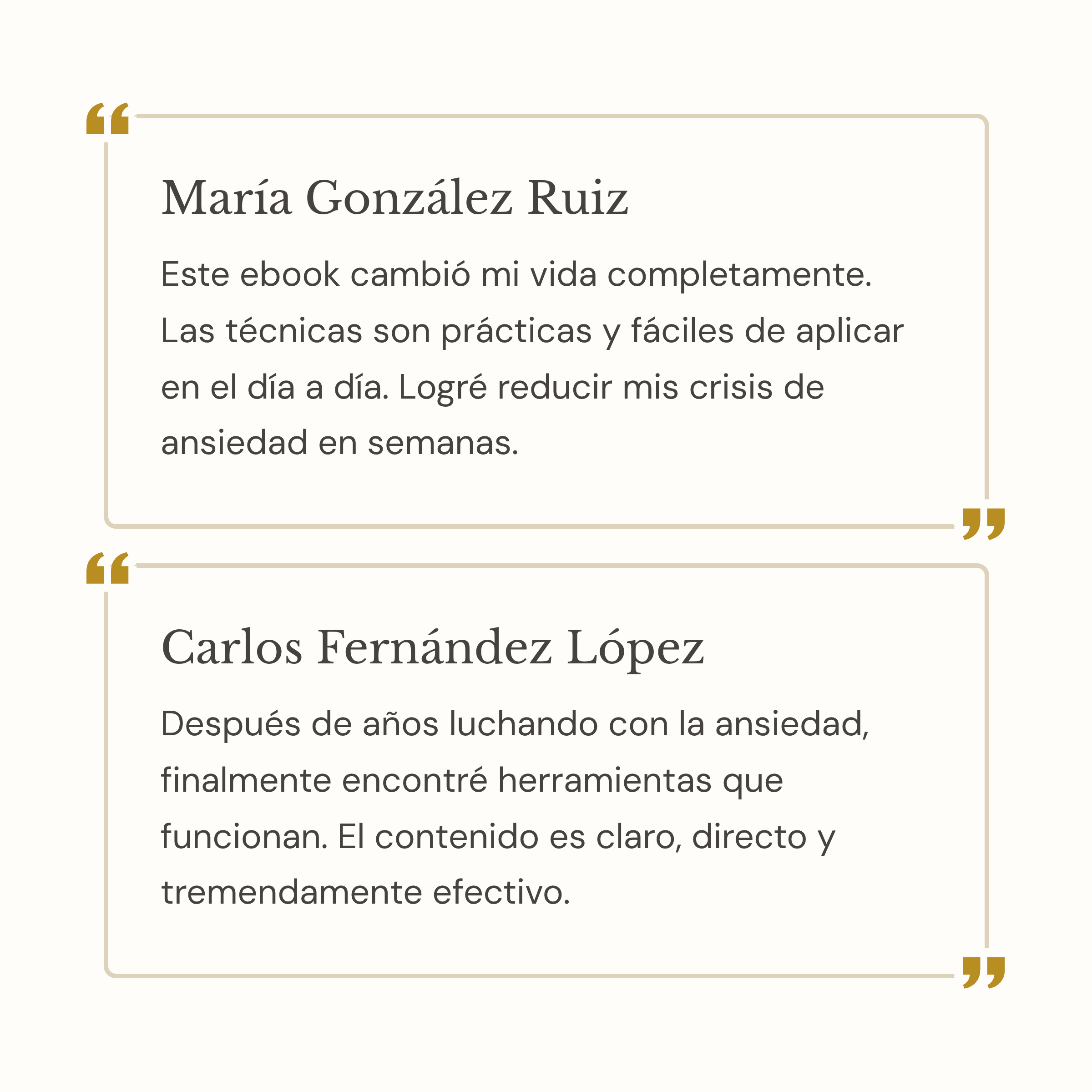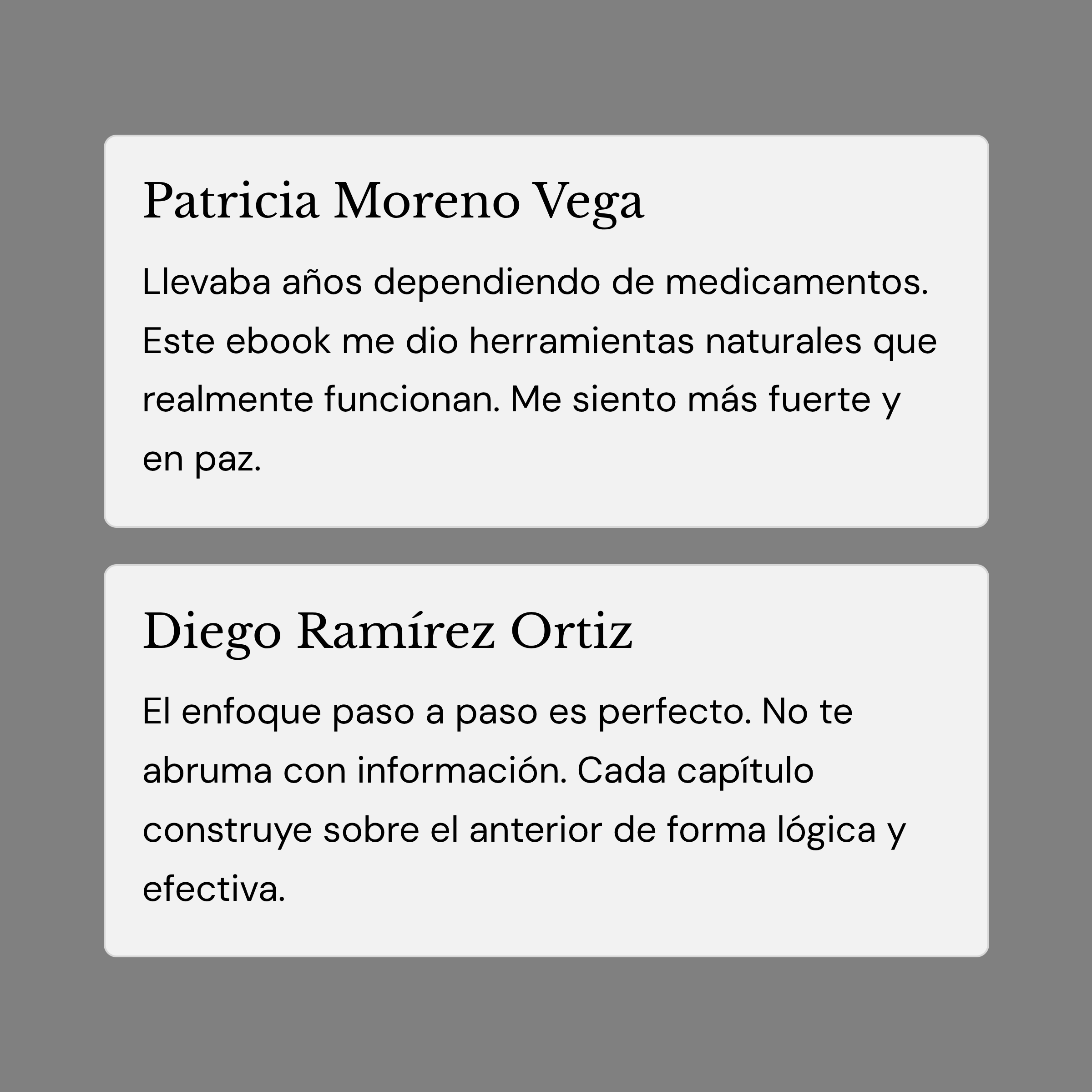 No. Este ebook no reemplaza la atención médica ni terapéutica. Está diseñado como una guía complementaria y educativa que te brinda herramientas prácticas para entender y gestionar la ansiedad desde un enfoque natural, científico y consciente.