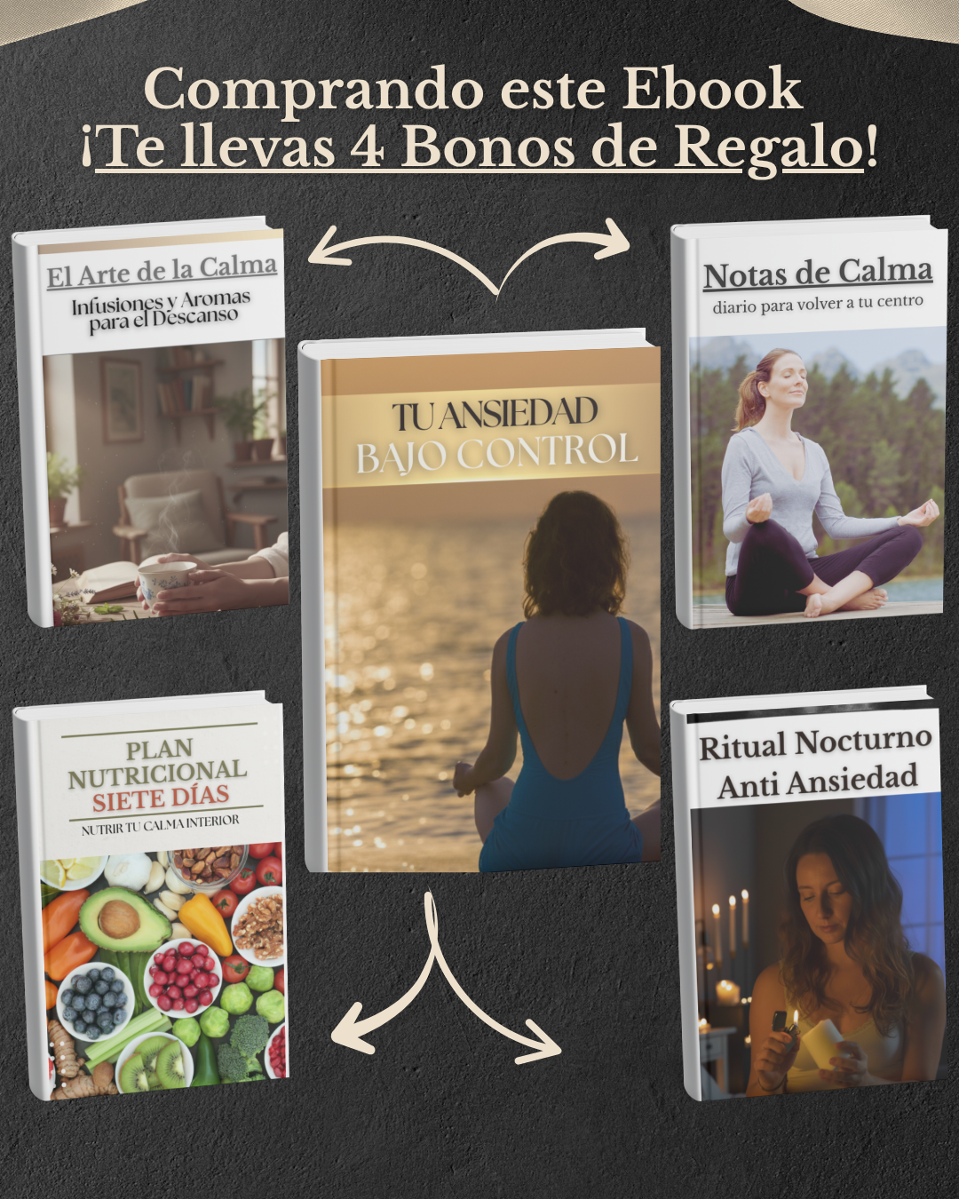 Sí. Al comprar Tu Ansiedad Bajo Control, recibís cuatro bonos exclusivos y totalmente gratuitos diseñados para acompañarte en tu proceso: